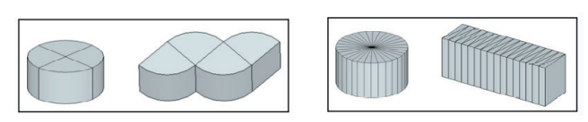 Şekil 1. Dik dairesel silindir modelinin 4 ve 32 eş dilimiyle oluşturulan geometrik cisim modeli örnekleri
